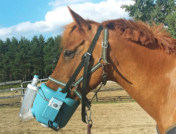 Der FlexinebTM wird mit einem Akku betrieben, das hat den Vorteil, dass die Pferde während des Inhalierens spazieren geführt oder longiert werden können.